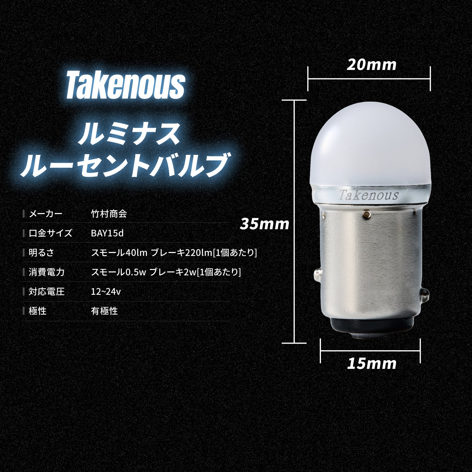 1つ目【程よい明るさの万能LED! 車種を選ばない絶妙な光量】 トラックはもちろん、乗用車、バイクなど幅広い車両に対応! 「程よく明るい」との高評価を多数いただいております。どんなシーンでも安心の視界を確保します。 2つ目【特殊レンズを採用しムラなく美しい光を実現】 竹村商会が誇るルミナスルーセントバルブは、独自開発の特殊レンズ技術を搭載。 光をムラなく均一に広げ、視界の鮮明度を飛躍的に向上。プロドライバーや業務車両オーナーにも信頼される高品質と安全性を提供します。 3つ目【デザイン性と効率性を両立】 チップが見えない特殊レンズ設計により、点灯時も消灯時も車両全体に洗練された印象を与えます。 さらに、わずか2Wの低消費電力でありながら、20~25W相当の明るさを実現し、省エネ性能と十分な光量を両立しました。 |