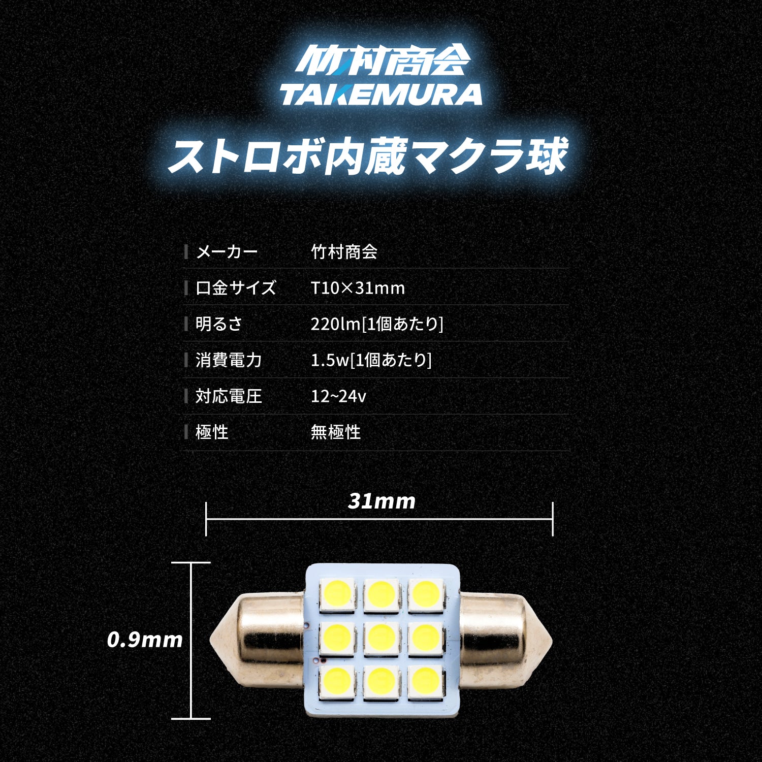 | ■こちらの商品はマクラ球T10×31mmです。 ■必ずサイズ確認をお願いします。 ■ストロボ内蔵タイプです。 ■複数取り付けた際、点滅パターンはズレる場合がございます。 ■明るすぎる場合は、チップは裏を向けて下さい。 ■28mmソケットでも商品画像にあるソケットは取り付け可能です。 ■当時モノの28mmソケットは対応していません。 ■車検に関しましては、最寄りの検査場でご確認下さい。 |