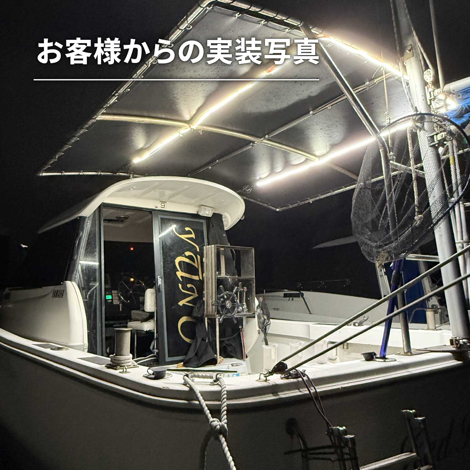 こだわり抜いたポイント1つ目!【漁師さんも満足のいく防水仕様】 現役の漁師さんにアドバイスをいただき、過酷な海の天候にも耐えれるようチューブ内を完全密閉し、漁師さんも満足のいく最強の防水仕様になりました! こだわり抜いたポイント2つ目!【ご希望のサイズでカットが可能】 実際に船に乗せていただき、取り付け箇所を確認した結果今回は約4.5cm刻みでカットが出来る仕様にしました! こだわり抜いたポイント3つ目!【夜の航海もお任せください】 現役の漁師さんに、明るさは重要とアドバイスをいただき真っ暗闇の海でも、満足のいく明るさを実現しました! |